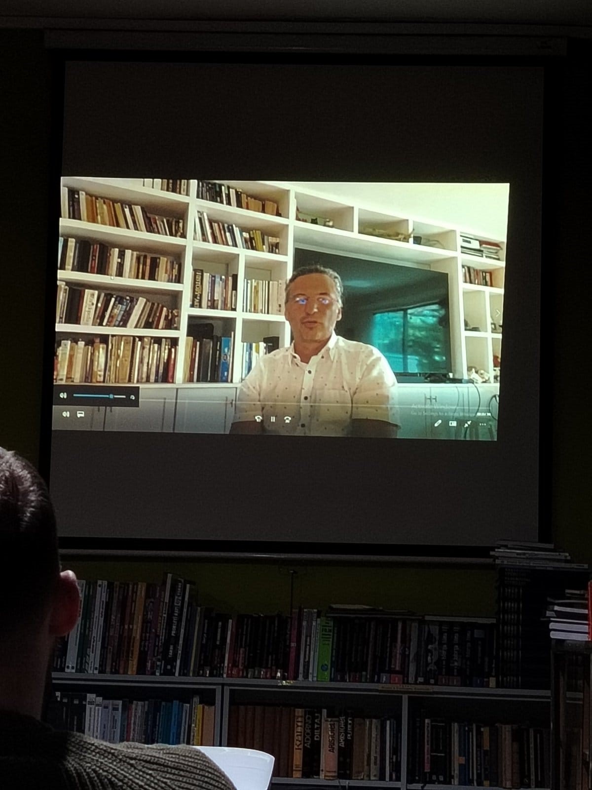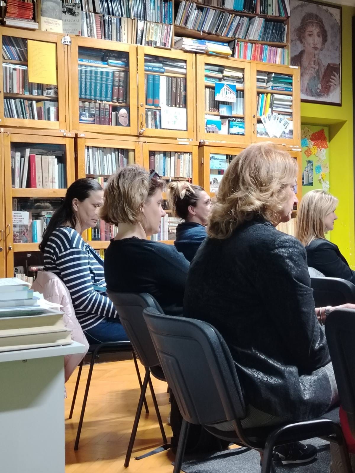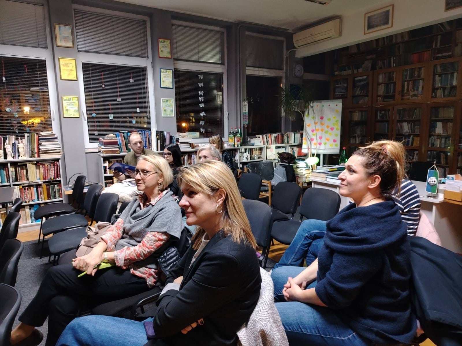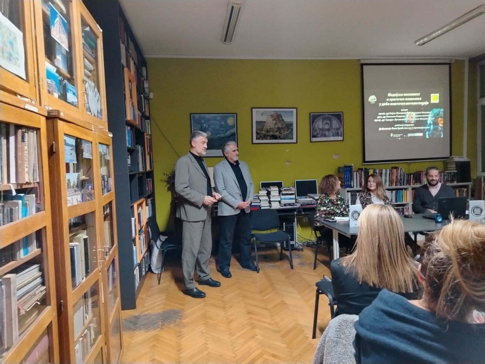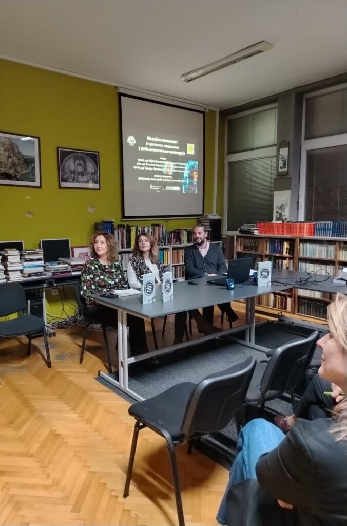 Трибина „Медијска писменост и критичко мишљење у доба вештачке интелигенције“, одржана у XIII београдској гимназији, била је подељена у два тематска дела. У првом делу разматрана су питања мишљења, писмености и интелигенције, са посебним освртом на природну и вештачку интелигенцију, њихове разлике и сличности. Бојан Лазаревић је представио тему „Шта јесте, а шта није AI“ уз видео презентацију, док је Виолета Кецман говорила о вештинама медијске писмености у контексту вештачке интелигенције, истичући важност аналитичког и критичког приступа дигиталним медијима. Тамара Вученовић је анализирала улогу технологије и дигиталне културе у савременом друштву, указујући на њен утицај на медијске садржаје и друштвене односе. Дискусија је обухватила питања етике у прикупљању и коришћењу података, регулације AI на глобалном и националном нивоу, као и све већу доминацију технолошких компанија. Завршна разматрања фокусирала су се на антропооптимизам као перспективу за сагледавање AI и њеног утицаја на друштво.